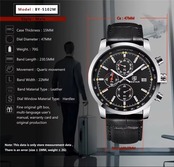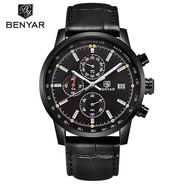 BENYAR ベンヤー BY-5102 クロノグラフ ブラックレザーBブラック