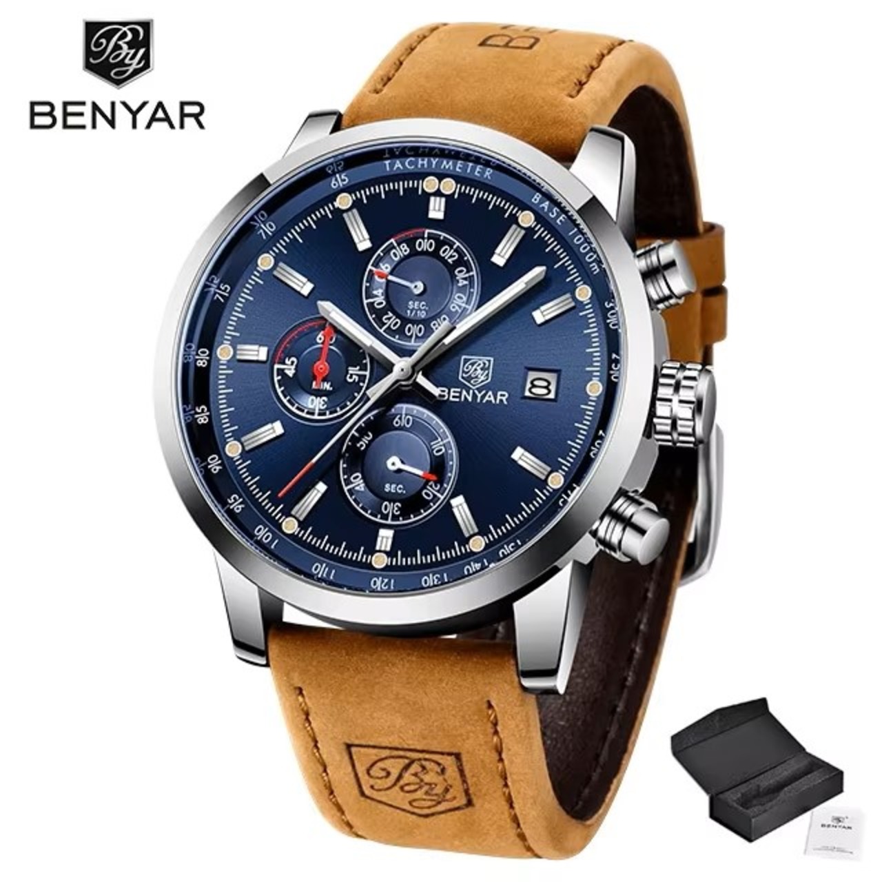 BENYAR ベンヤー BY-5102 クロノグラフ ブラウンレザーSブルー