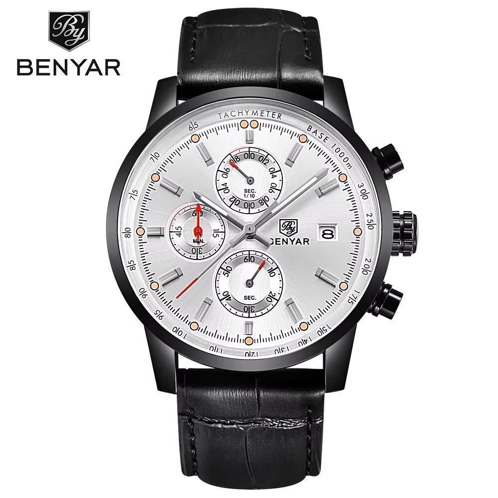 BENYAR ベンヤー BY-5102 クロノグラフ ブラックレザーBホワイト