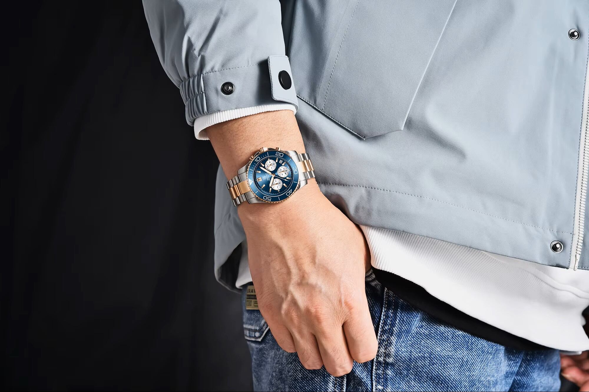 BENYAR ベンヤー BY-S002 クロノグラフ ステンレス コンビ ブルー