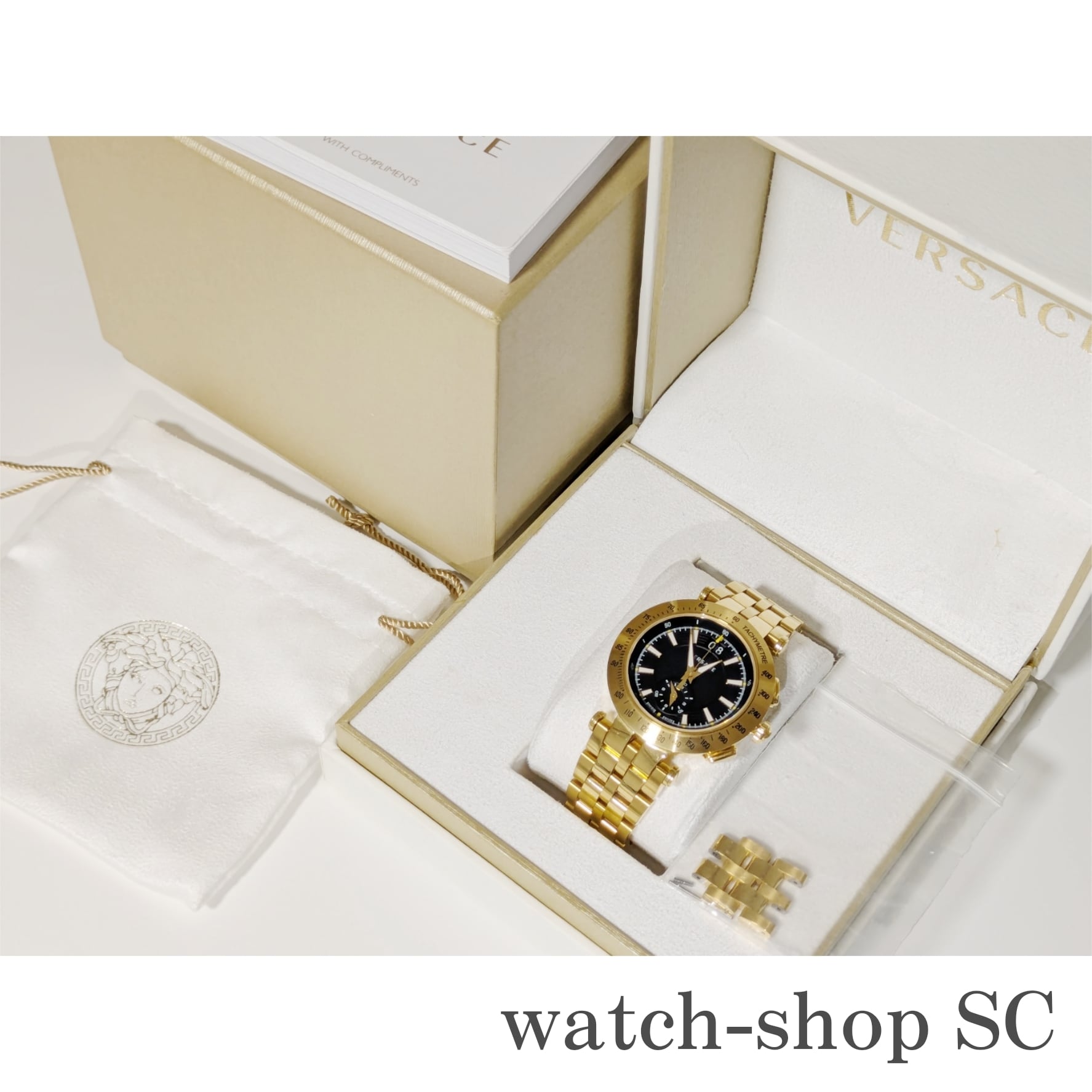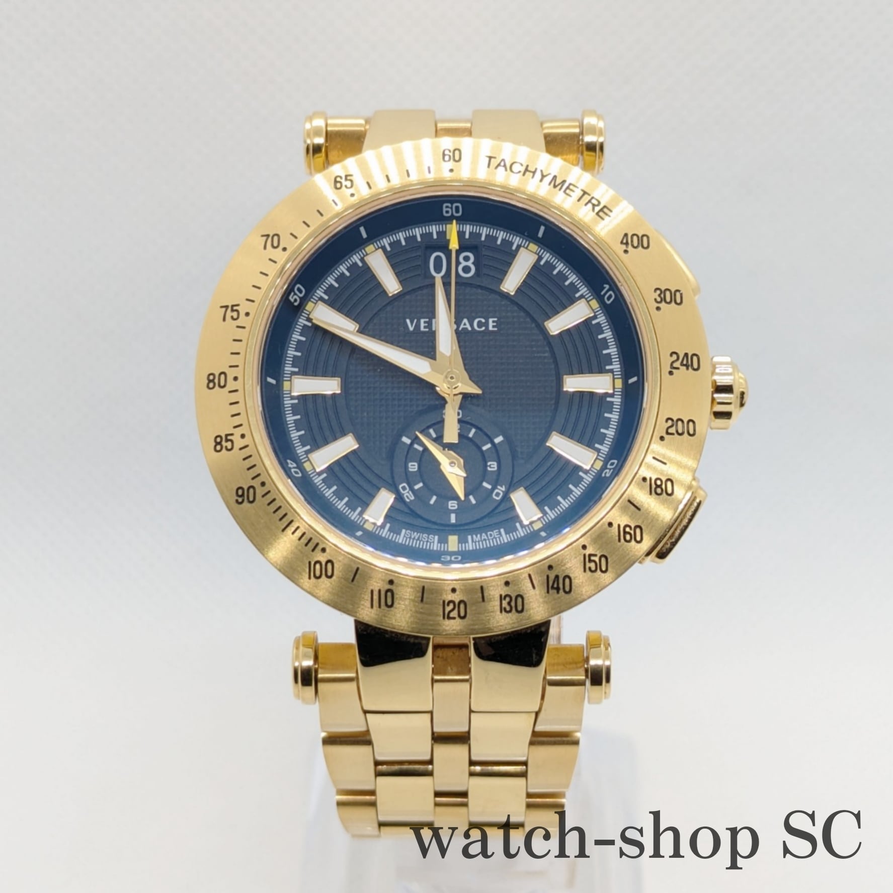 【ユーズド】ヴェルサーチ V-RACE VAH ゴールド 黒文字盤 42mm クォーツクロノグラフ腕時計