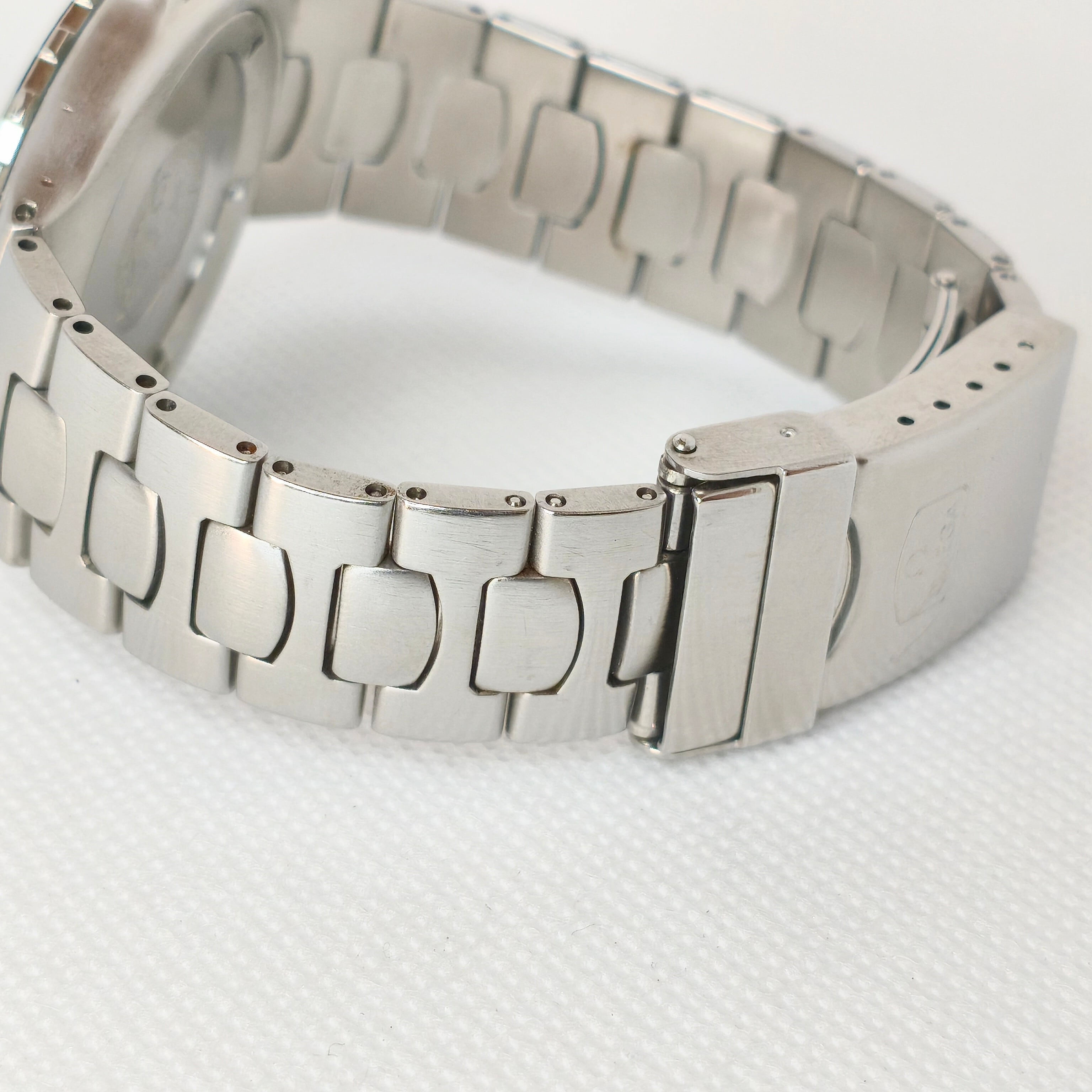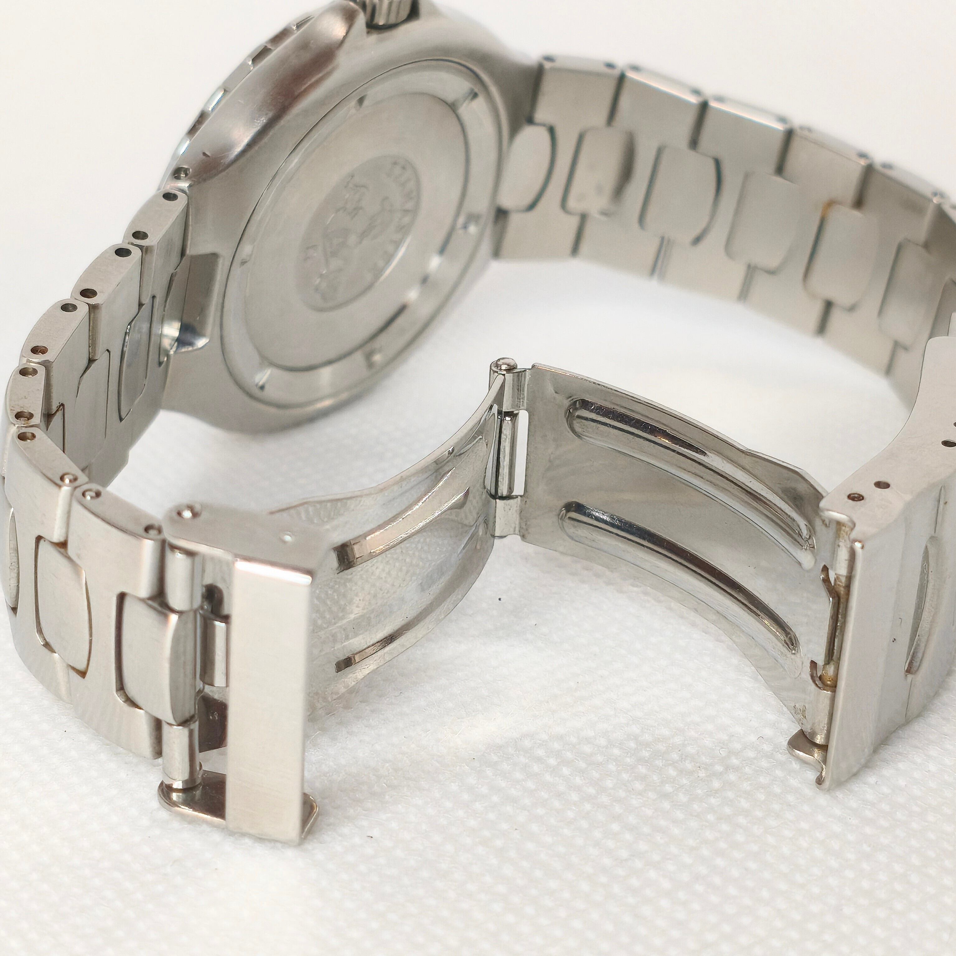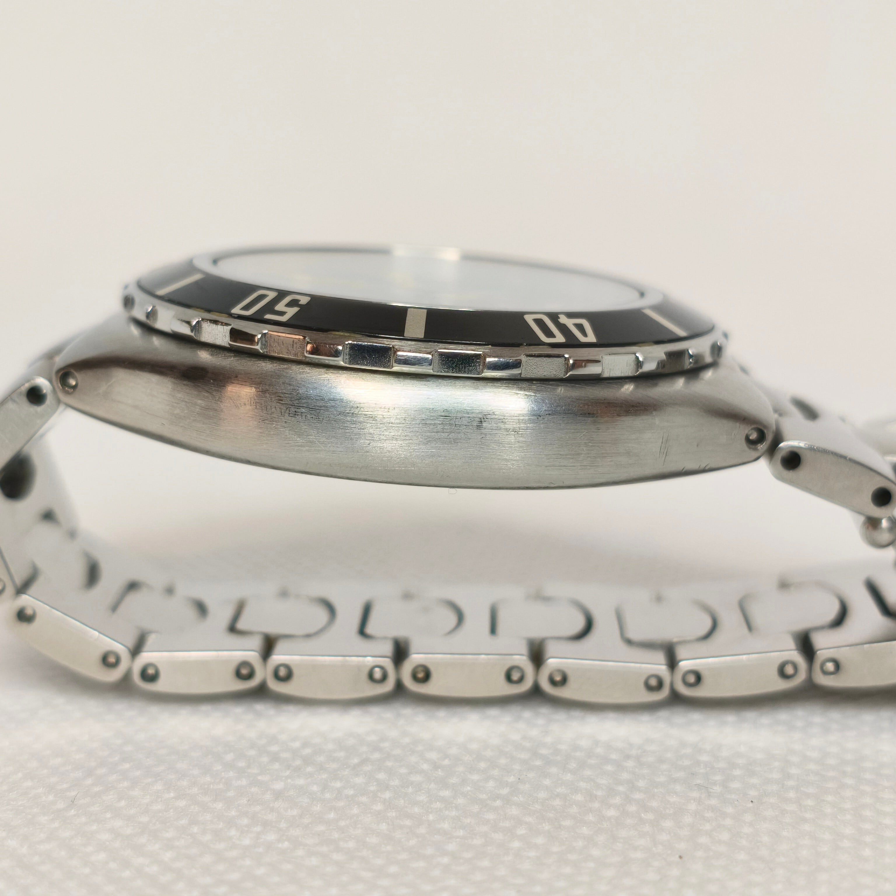 本個体はケース外側にシリアル刻印がない仕様ですが、裏蓋の形状から1990年代半ば以前の製造と推察されます。ヴィンテージに近い風合いを持ちながら、実用性も兼ね備えた一本です。
