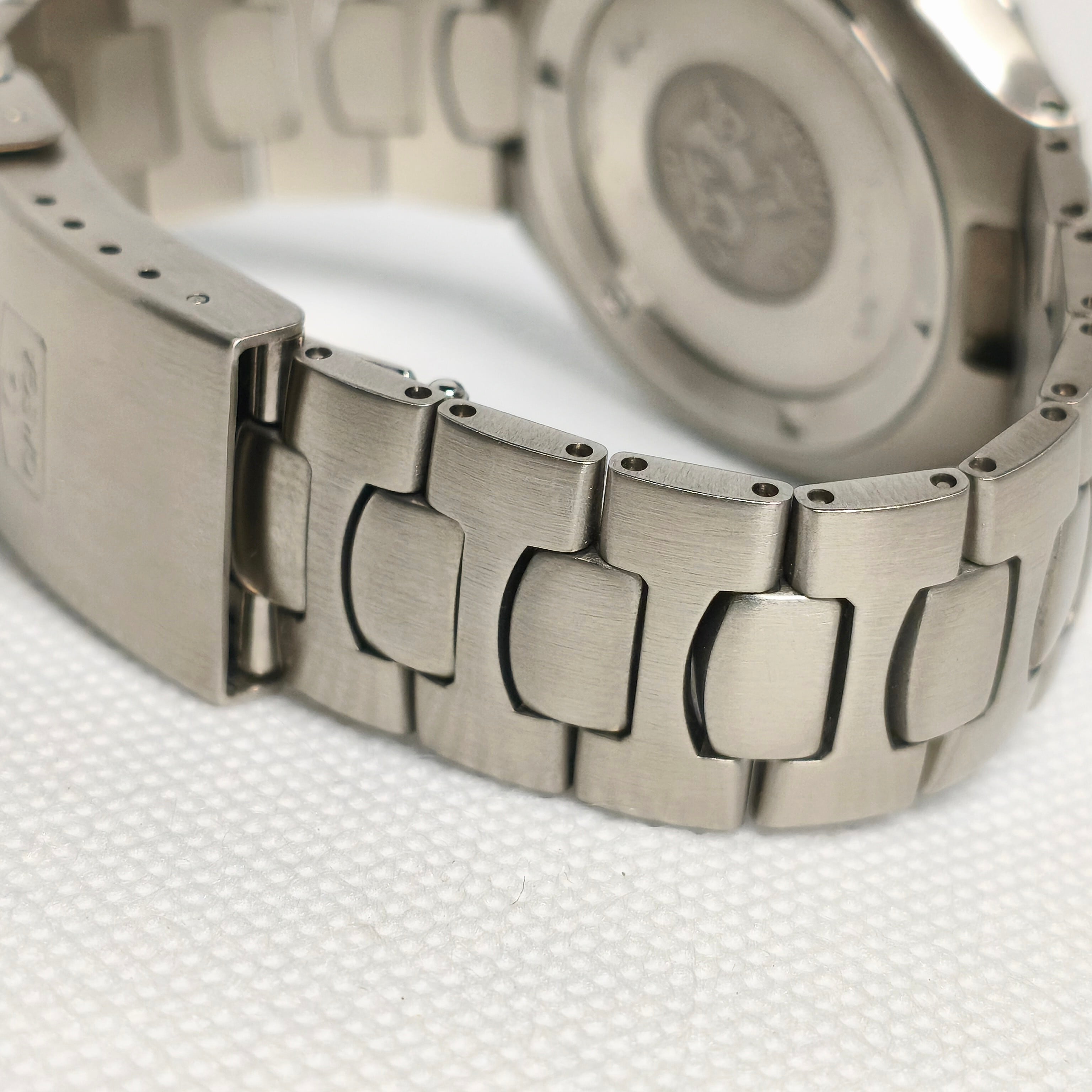 ケース全体に日常使いに伴うスレや小傷はございますが、目立つような打痕(へこみ)はありません。ベゼルの一部に経年摩耗による塗装剥げが見られますが、ヴィンテージらしい風合いを損なうものではありません。
